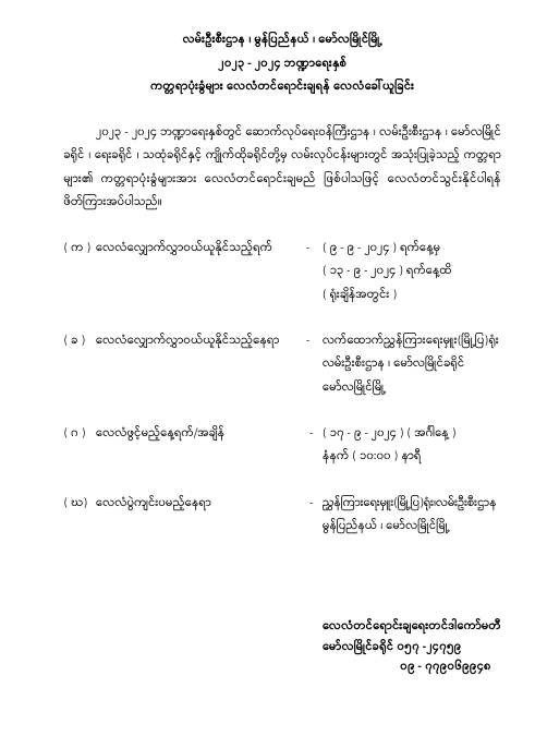 22.07.2025 | 22.07.2025 | တင်ဒါအောင်မြင်ကြောင်း ကြော်ငြာခြင်း | |||