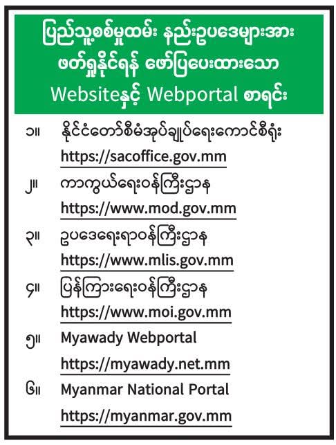 နိုင်ငံတော်အစိုးရအနေဖြင့် ကျောင်းနေအရွယ်ကလေးတိုင်း ကျောင်းနေနိုင်ရေးအတွက် အခမဲ့ပညာရေးစနစ်ကို အကောင်အထည်ဖော်ဆောင်ရွက်လျက်ရှိပြီး အနာဂတ်ဖွံ့ဖြိုးတိုးတက်ရေးအတွက် မရှိမဖြစ်လိုအပ်သည့် ပညာရေးကဏ္ဍကို မြှင့်တင်ပေးလျက်ရှိရာ ယခုနှစ်တွင် တစ်နိုင်ငံလုံးရှိ အခြေခံပညာကျောင်းများ ဇွန် ၂ ရက်တွင် စတင်ဖွင့်လှစ်တော့မည်ဖြစ်သဖြင့် ကျောင်းအပ်နှံမည့် ကျောင်းသား/ ကျောင်းသူများအတွက် အခမဲ့ပညာရေးအဖြစ် သူငယ်တန်းမှ ဒွါဒသမတန်းအထိ သက်ဆိုင်ရာ အတန်းအလိုက် ကျောင်းသုံးပြဋ္ဌာန်းစာအုပ်၊ ဗလာစာအုပ်၊ ကျောင်းဝတ်စုံ၊ စာရေးကိရိယာ အစရှိသည်တို့ကို အခမဲ့ ထောက်ပံ့ပေးအပ်သွားမည်ဖြစ်သည်။