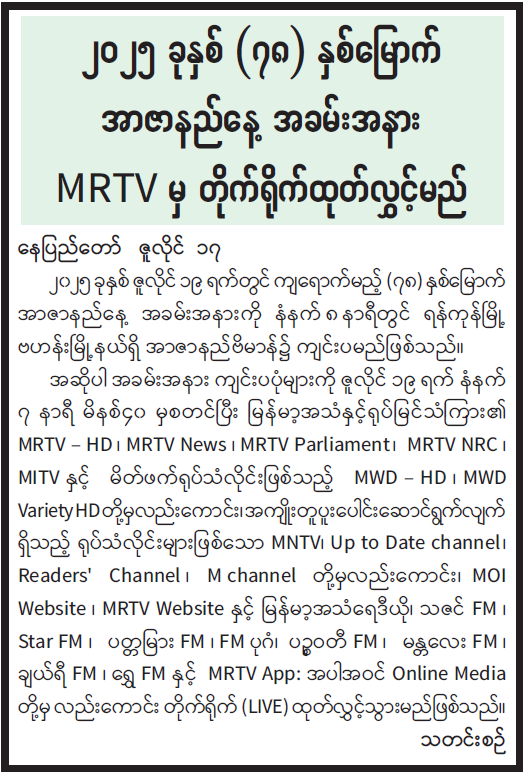 အဆိုပါ အိမ်တွင်းမှုသက်မွေးလုပ်ငန်းပညာသင်ကျောင်းများ၌ ၂၀၂၅-၂၀၂၆ ခု၊ ဘဏ္ဍာရေးနှစ်၊ တတိယအကြိမ်မြောက် ကျောင်းအခြေပြုသင်တန်းအား ၂၁.၇.၂၀၂၅ ရက်မှ ၂၉.၈.၂၀၂၅ ရက်ထိ ဖွင့်လှစ်သင်ကြားပေးမည်ဖြစ်ရာ တက်ရောက်လိုသော သင်တန်းသား(အမျိုးသမီး/အမျိုးသား)များအနေဖြင့် သက်ဆိုင်ရာ တိုင်းဒေသကြီး/ပြည်နယ်များရှိ အောက်ပါအိမ်တွင်းမှုသက်မွေးလုပ်ငန်း ပညာသင်ကျောင်းများသို့ ရုံးချိန်အတွင်းဆက်သွယ်စုံစမ်း၍ တက်ရောက်နိုင်ကြောင်း လူမှုဝန်ထမ်းဦးစီးဌာနမှ သိရသည်။