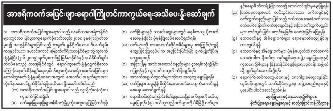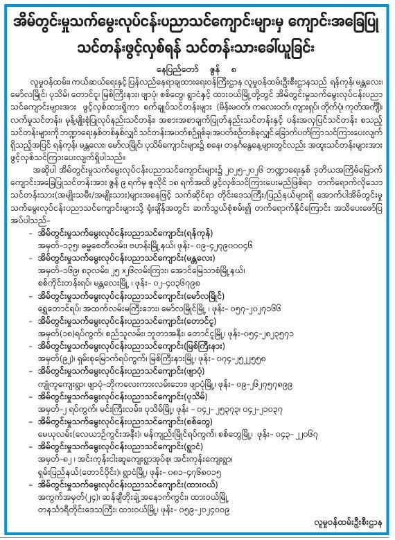 ဇွန်လ ၇ ရက်နေ့ ညနေ ၆ နာရီခွဲ တိုင်းထွာချက်များအရ ကပ္ပလီပင်လယ်ပြင်နှင့် ဘင်္ဂလားပင်လယ်အော်တို့တွင် မုတ်သုံလေအားကောင်းလာနိုင်မှုကြောင့်လည်းကောင်း၊ အရှေ့ဘက်မှ ရွေ့လျားလာသော လေပွေလှိုင်းများ၏ အရှိန်ကြောင့်လည်းကောင်း ၉-၆-၂၀၂၅ ရက်နေ့မှ ၁၅-၆-၂၀၂၅ ရက်နေ့အတွင်း နေပြည်တော်၊ ရန်ကုန်တိုင်းဒေသကြီး၊ မန္တလေးတိုင်းဒေသကြီး၊ ပဲခူးတိုင်း ဒေသကြီး၊ မကွေးတိုင်းဒေသကြီး၊ စစ်ကိုင်းတိုင်းဒေသကြီးအောက်ပိုင်း၊ ဧရာဝတီ တိုင်းဒေသကြီး၊ တနင်္သာရီတိုင်းဒေသကြီး၊ ကယားပြည်နယ်၊ ကရင်ပြည်နယ်၊ ချင်းပြည်နယ်၊ မွန်ပြည်နယ်၊ ရခိုင် ပြည်နယ်နှင့် ရှမ်းပြည်နယ် (တောင်ပိုင်းနှင့် အရှေ့ပိုင်း)တို့တွင် နေရာစိပ်စိပ်မှ နေရာအနှံ့အပြား မိုးထစ်ချုန်းရွာပြီး အချို့ဒေသများတွင် ဒေသအလိုက်နှင့် နေရာကွက်၍ မိုးကြီးမည်။