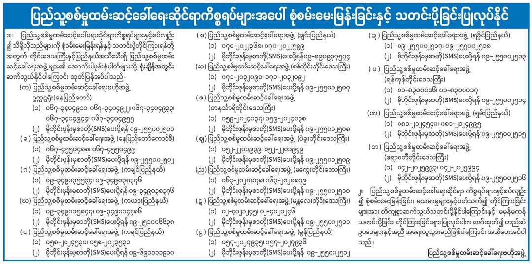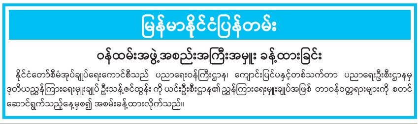 • ဦးစီးဌာန၏လုပ်ငန်းများနှင့်ကြေညာချက်များ